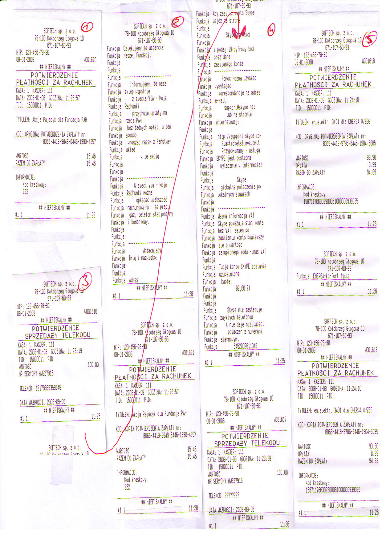 1). Drukarka niepotrzebnie wiąże kupon zasilenia konta z poprzednim paragonem. Wciąga z niego wartość doładowania. Podczas, gdy na paragonie mogę mieć oprócz doładowań również inne, zwykłe towary.
