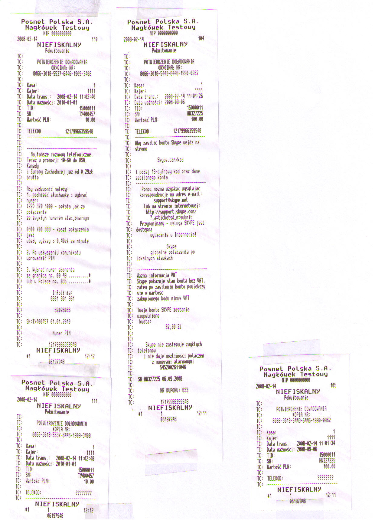 3). Powyższy raport nie pozwala na umieszczenie linii zawierających liczby (przede wszystkim kod doładowania Skype).